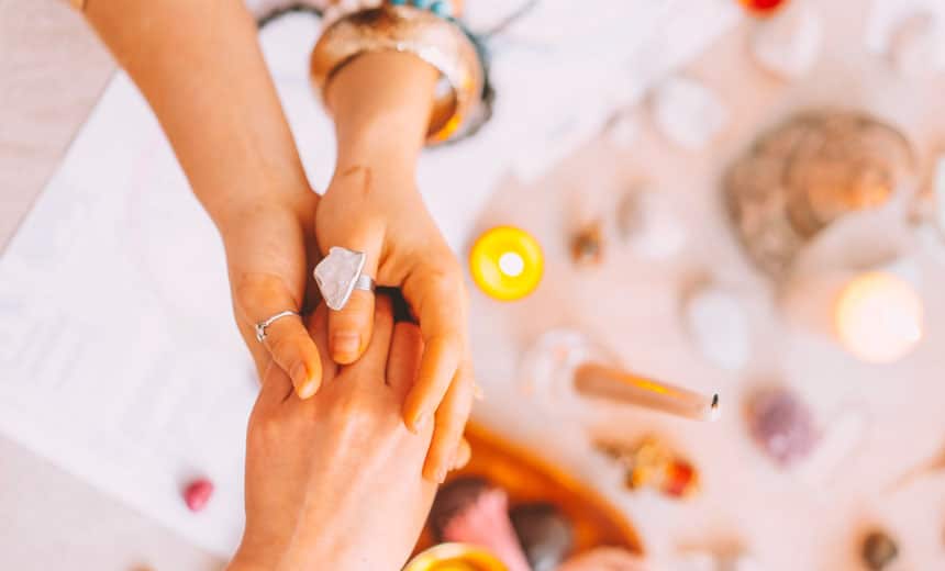 This is a really simple one and I share this with clients a lot. It’s just using your hands. For me, I will place them on the central line of my body. It’s a practice of connecting with somatic, which is the body. It’s somewhere on the heart and then the abdomen. But, it might be higher or lower sometimes. And that’s a practice of intuition, where do my hands want to rest for the moment? And it’s just brief, it could be three breaths or five breaths, but just like breathing into that space with eyes closed. And honestly, that’s a ceremony. Immediately I’m connected to my center channel. Not only physically, but energetically.